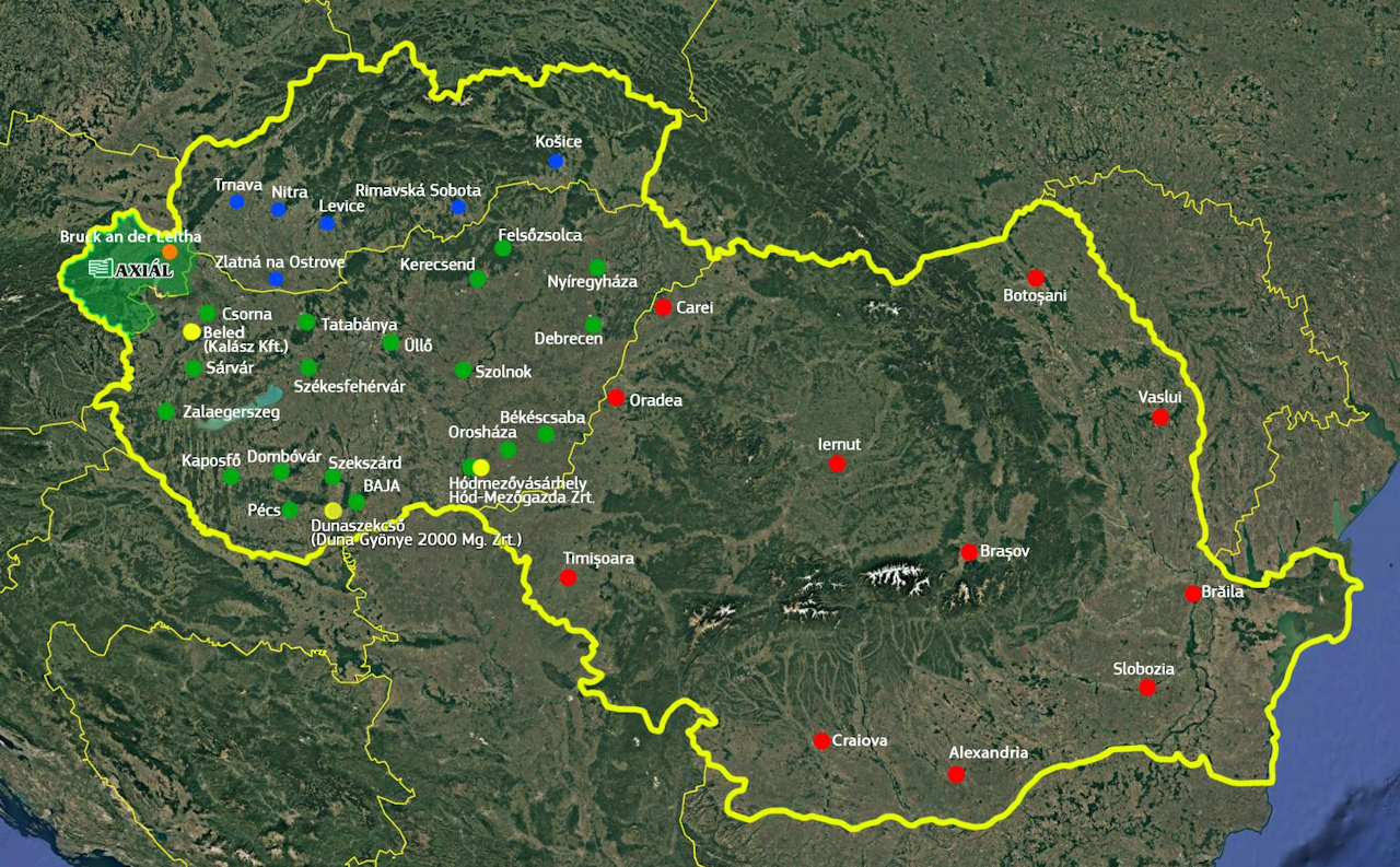 Ezzel párhuzamosan immár nyugodtan nevezhetjük a bajai központú céget multinacionális vállalkozásnak, hiszen az elmúlt évtizedekben komoly jelenlétet épített ki több szomszédos országban is. Szlovákiában csaknem 100 főt foglalkoztatnak, és még idén megnyílik hetedik telephelyük a lengyel-szlovák határhoz közeli Lipótszentmiklóson. Eközben az AXIÁL érdekeltségébe tartozó MUNAX szintén országos lefedettséggel bír Romániában, ahol több mint 20 éve van jelen.